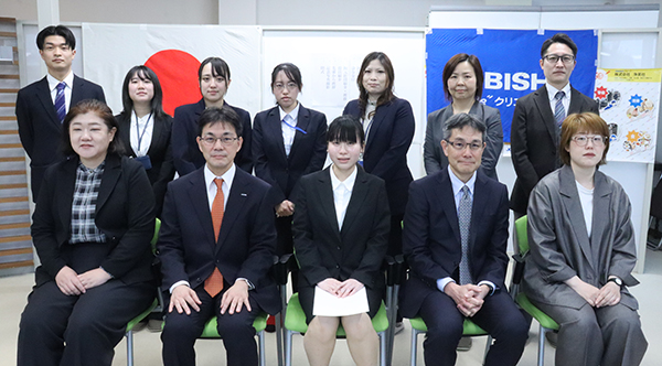 最後に入社2年目の社員から「入社直後の今、期待と不安でいっぱいだと思います。新たな環境に戸惑った時は、私を含めた会社の仲間たちを頼ってください。全員で悩み、考え、成長していきましょう」と激励の言葉で式は終了しました。